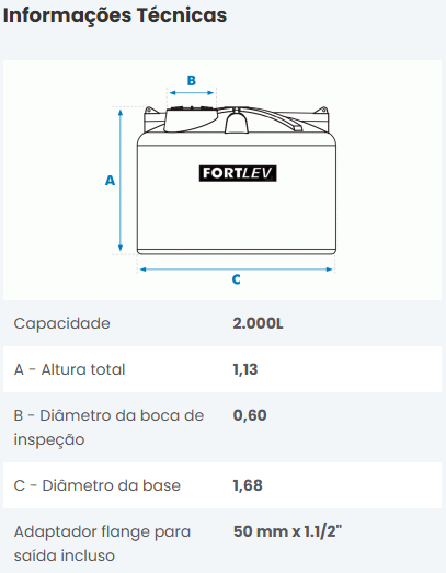 Caixa D’Água Tampa Roscavel 2000L Fortlev