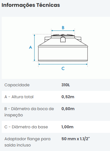 Com fechamento rápido e seguro, o Tanque Fortlev possui tampa de 1/4 de volta e vedação total, que impede a entrada de sujeira, de insetos e garante ainda mais a conservação da água. Disponíveis em volumes até 30.000 litros, os Tanques Fortlev vêm com adaptador flange instalado na saída (até 3.000 L: 50 mm x 1.1/2″ e de 5.000 L à 20.000 L: 60 mm x 2″), o que facilita a instalação do produto.