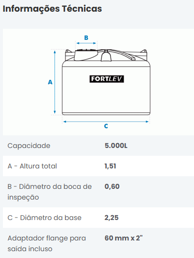 Caixa D’Água Tampa Roscavel 5000L Fortlev