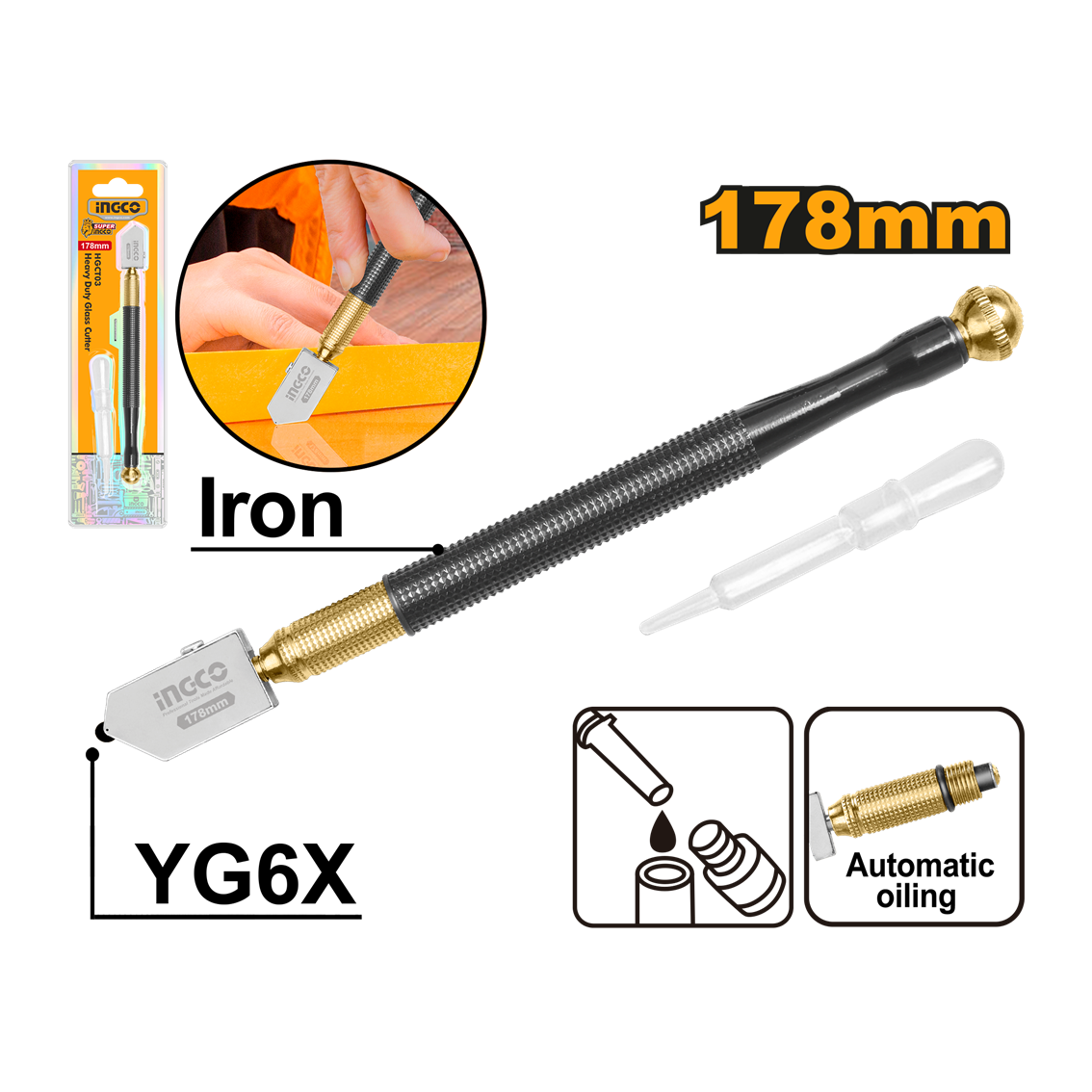 / Cortador De Vidro C/Reserva Profissional 178mm Ingco HGCT03