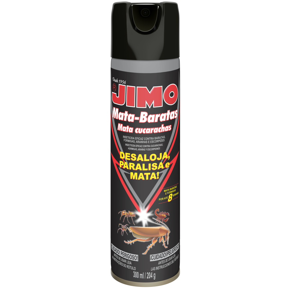 JIMO MATA-BARATAS é um inseticida especificamente desenvolvido para matar baratas, formigas, aranhas e escorpiões, prevenindo contra novas infestações. Continua agindo por até 8 semanas para baratas e formigas.